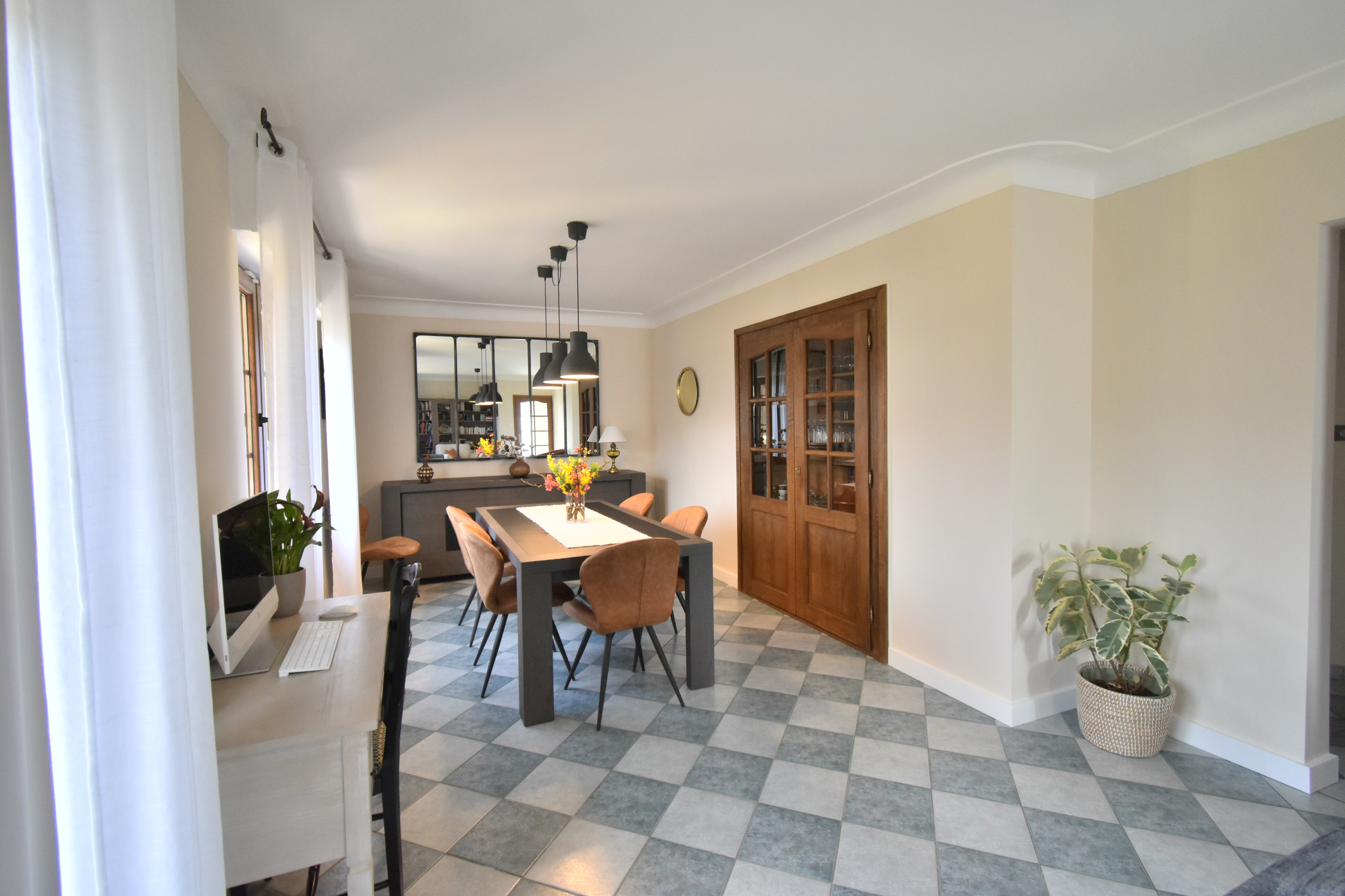 Au rez-de-chaussée, le salle à manger et salon de plus de 32m² permet un accès direct vers la terrasse